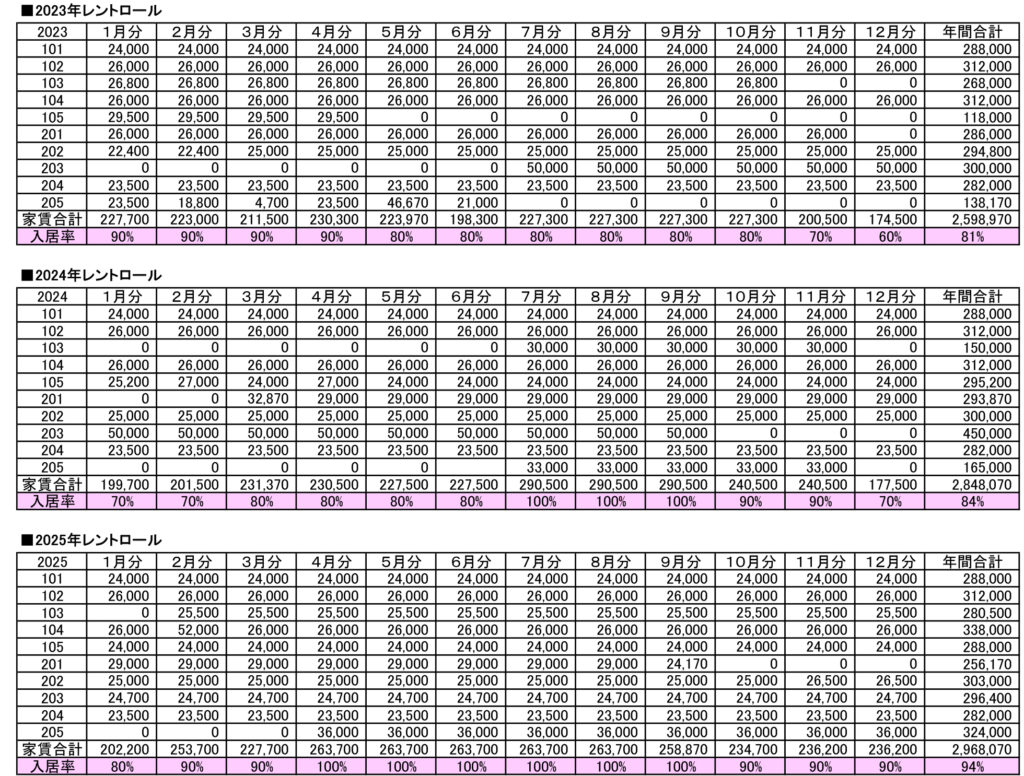 | 満室時家賃収入 | 225,000円 | 254,000円 | 258,000円/月 |
